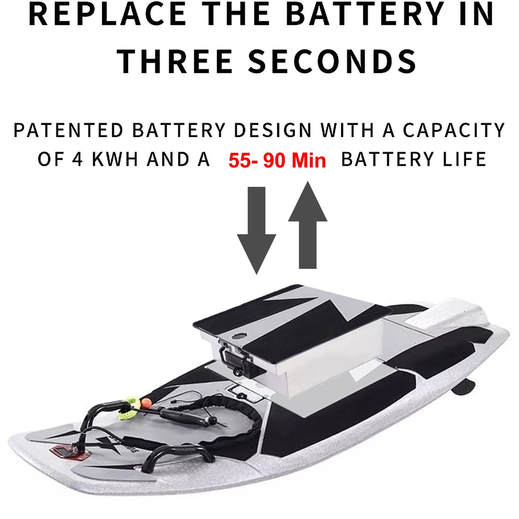- 【Designed for Adults】Equipped with a powerful 10KW motor and a 3.7KWH lithium-ion battery, this electric jet surfboard delivers a thrilling ride with a top speed of 50 km/h. Enjoy the exhilarating rush and express your love for water sports as you glide effortlessly over the waves.